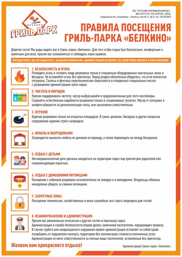 Гриль парк расположен в живописном лесу среди вековых сосен в Уктусском лесопарке. БЕЛКИНО находится под видеонаблюдением, что позволит обеспечить Ваш безопасный отдых.
